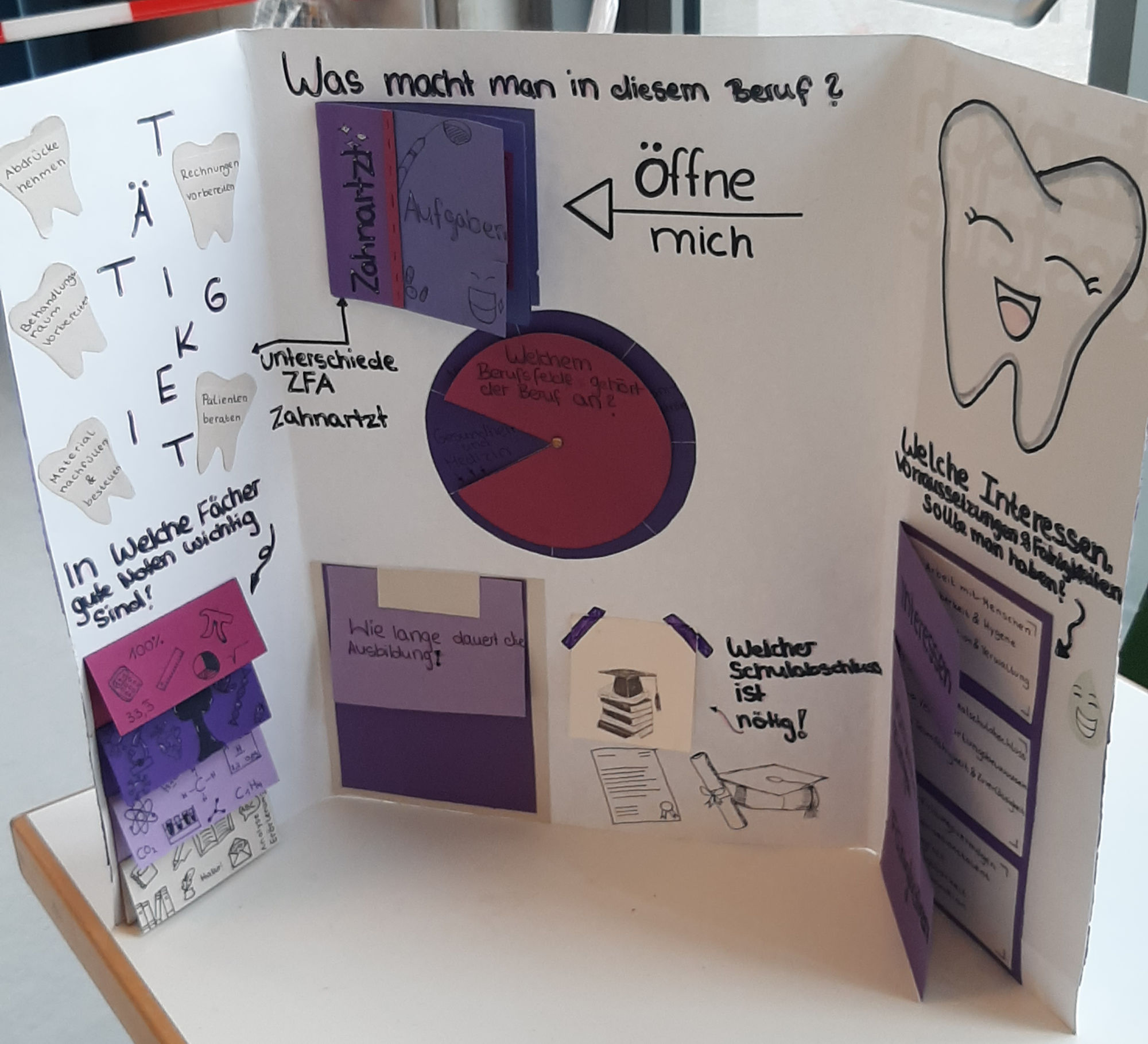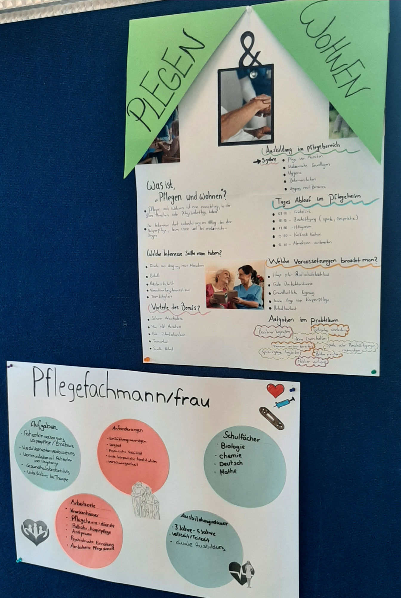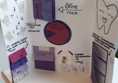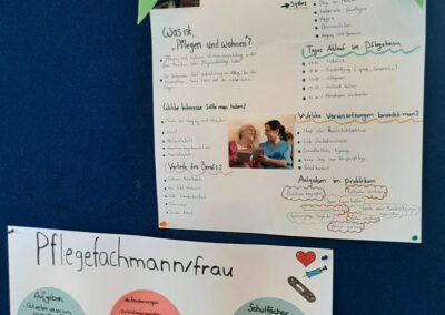 Empfangen wurde jede 8. Klasse mit zwei Kurzvorträgen zu einem Praktikum in der Altenpflege und zu einem Praktikum in der Physiotherapie. Anschließend hatten die Achtklässler Zeit, sich an Marktständen über verschiedene Ausbildungsberufe und Praktikumsmöglichkeiten zu informieren und Fragen an die Zehntklässler zu stellen.